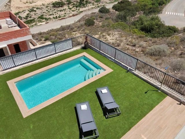 Arena Beach set on the hillside La Finca Golf Resort near Algorfa Town, and very close to Torrevieja and Orihuela Costa with fantastic views of the nearby countryside at mountains, and only 15 minutes from the local beaches. These 8 single family homes with parking area, solarium, semi-basement, private pool and top quality materials and finishes. All white goods included, under floor heating in the master bedroom, pre-installation of air conditioning. The villa comes with 6 x 3m pool (please check on application). These are individual villas with different plot and house sizes, lowest price starts at 415,000 euros to 885,000 euros. The model shown is the pilot house at 522,000, which has lounge, dining, fully fitted kitchen and toilet on the main floor, with outside patio, upstairs include two bedrooms and bathroom, roof via spiral staircase includes very large solarium, finally basement includes completely separate living room, dining area and kitchen, with large bedroom and bathroom, all leading out to garden with swimming pool. This property has to be viewed as is fantastic value for the build and specification and can be made available in 3 months.