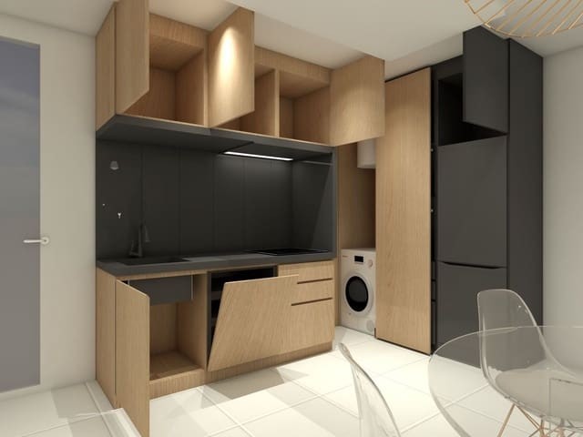 Residential of 79 homes with 2-3 bedrooms, distributed over 5 floors. It has free parking and storage room at extra cost. Completely closed residential with community pools for adults and children, green areas, playground for children and area for adults with bio-healthy circuit, It is located on the Costa Blanca in San Miguel de Salinas near Campos Golf, beach and Shopping Centers. Fully furnished kitchen with filter group and induction hob. Porcelain floors. Compact blinds. White laminated wardrobes with mezzanine in bedrooms. Pre-installation of air conditioning for split in living room and bedroom. Aerothermal. 70% energy savings